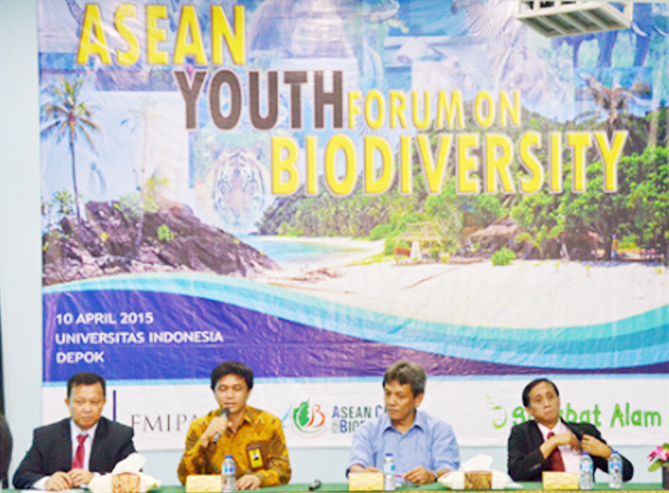 Jumat (10/04/2015) ASEAN Centre of Biodiversity yang berpusat di Philippinnes bersama dengan Sahabat Alam dan Fakultas Matematika dan Ilmu Pengetahuan Alam Universitas Indonesia (FMIPA UI) mengadakan seminar ASEAN Youth Forum on Biodiversity yang bertujuan untuk memberikan wawasan mengenai keanekaragaman hayati dan memperluas jaringan generasi muda di seluruh wilayah ASEAN untuk mulai peduli dan melakukan pelestarian keanekaragaman hayati.