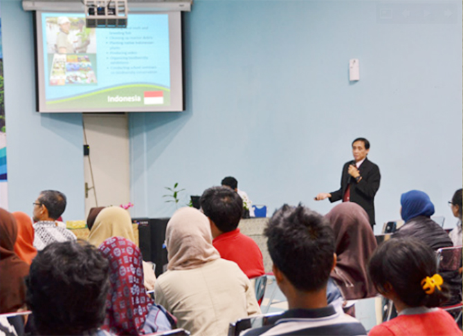 Paparan lengkap mengenai keanekaragaman hayati disampaikan oleh Mr. Rolando A. Inciong – Director ACB Communication & Public Affairs dan dilanjutkan dengan sesi tanya jawab dengan mahasiswa FMIPA Univeristas Indonesia bersama Mr. D. Filiberto A. Pollisco Jr. – Policy Specialist ACB.