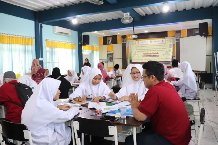 Di sana tim pengmas yang diketuai Afiatry Putrika, M.Si., bekerja sama dengan mitra Yayasan Pandu Cendikia dan Bluebird Group, memberikan pendalaman komprehensif tentang ilmu hayati bagi siswa Pondok Pesantren Al-Muhajirin, guna meningkatkan kepedulian para siswa terhadap keanekaragaman hayati di lingkungan mereka, melalui eksplorasi lingkungan sekitar, pengenalan mikroorganisme, hingga pelatihan menulis karya ilmiah.