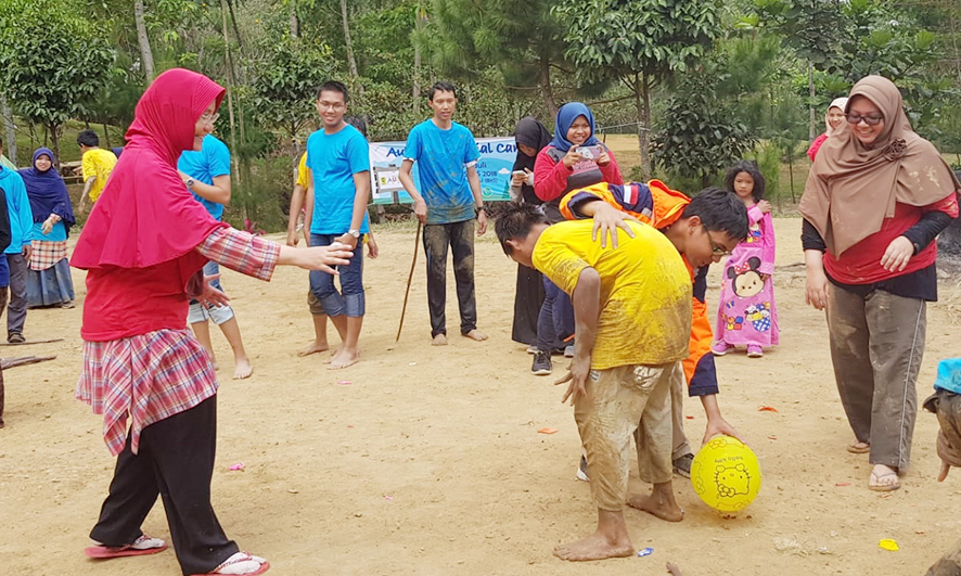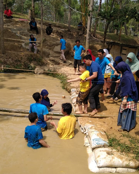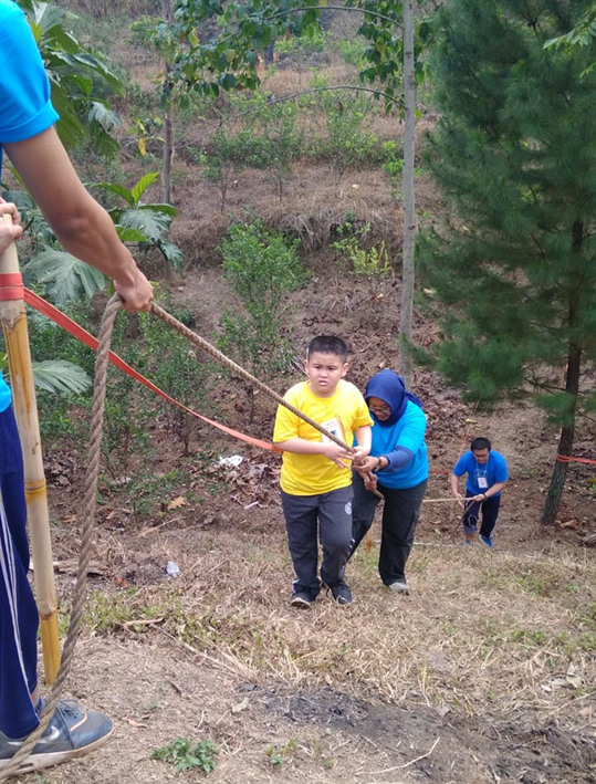 Kakak-kakak relawan dan sibling membantu serta memberikan semangat kepada para peserta untuk dapat menyelesaikan permainan yang mereka lakukan, serta mendampingi aktivitas mereka selama berkemah bersama sibling.