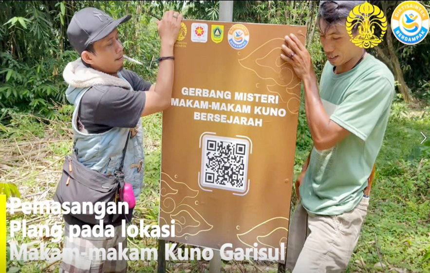 Tahap selanjutnya adalah pembuatan papan informasi digital berbasis QR Code yang dirancang dan dirakit langsung oleh tim pengabdian masyarakat bersama mahasiswa FMIPA UI menggunakan rangka besi hollow dan papan PVC. Papan ini kemudian dipasang di beberapa titik strategis pada lokasi wisata budaya di Kecamatan Jasinga agar mudah diakses oleh masyarakat.